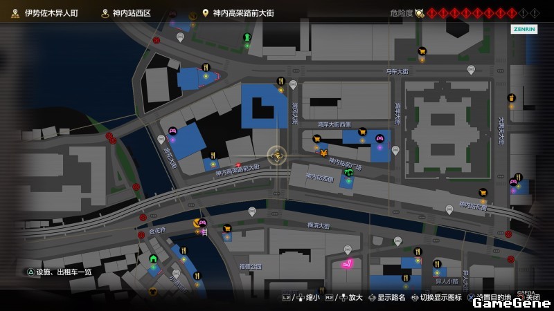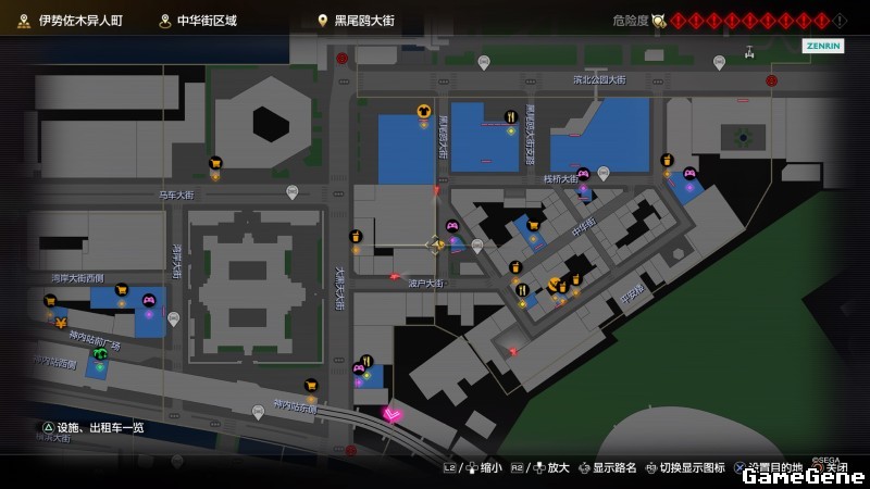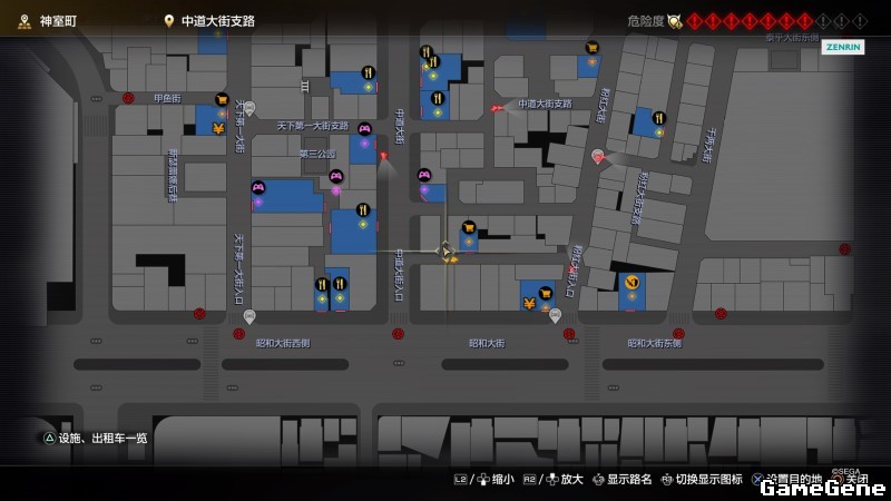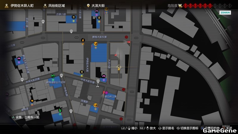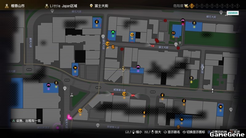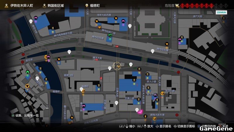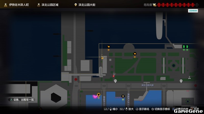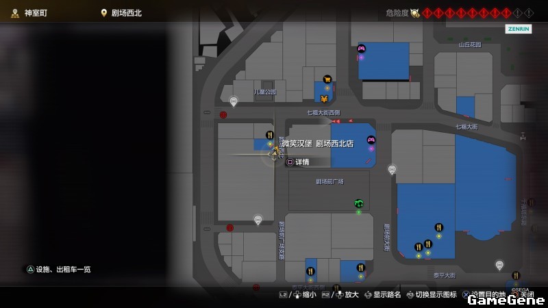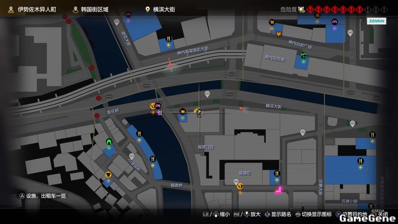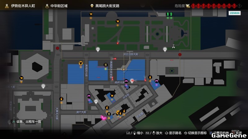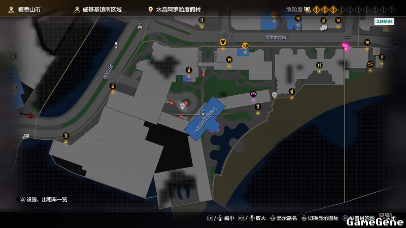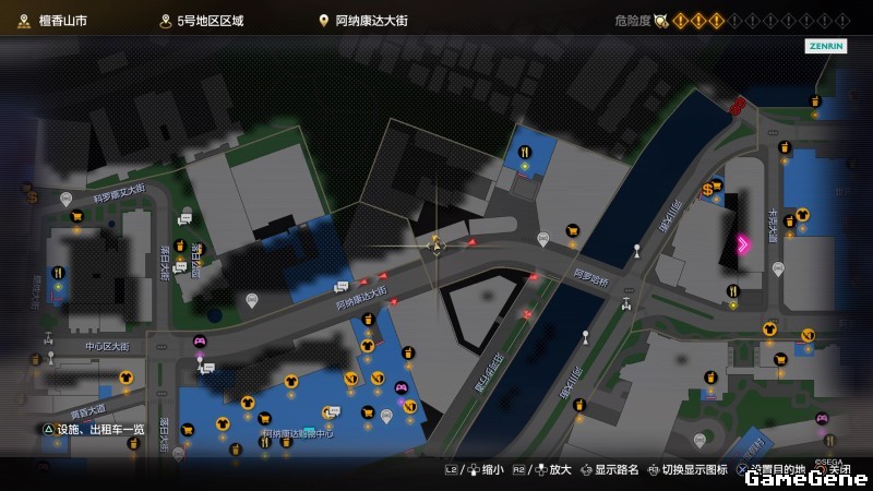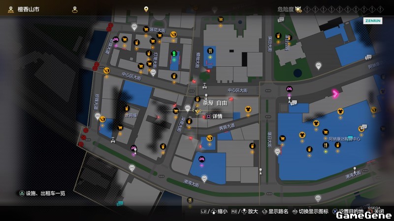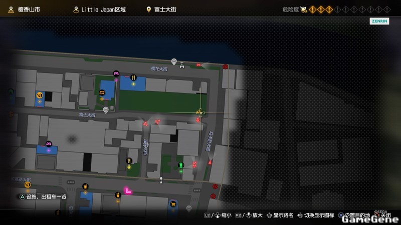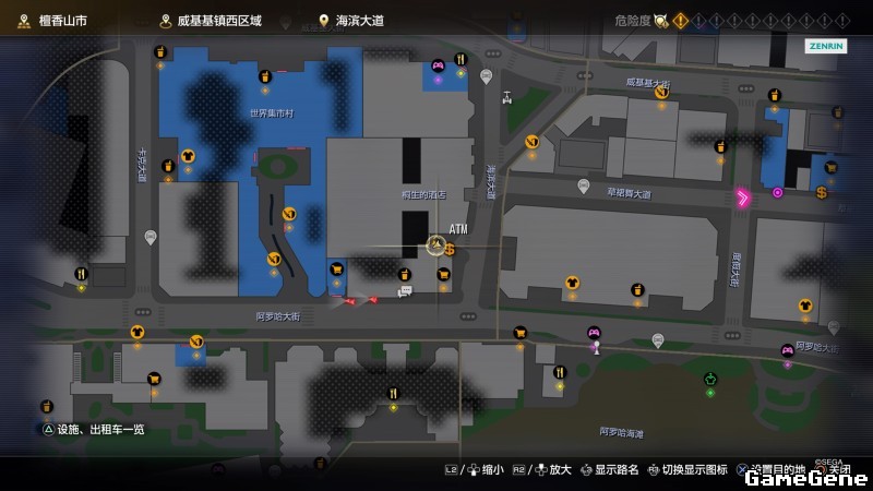举例子,比如LOVE MAGIC 成人用品店。位置:横滨10,浪漫路东南方。那就在上图10标注位置,此位置再找到街道浪漫路,然后就能找到商店。