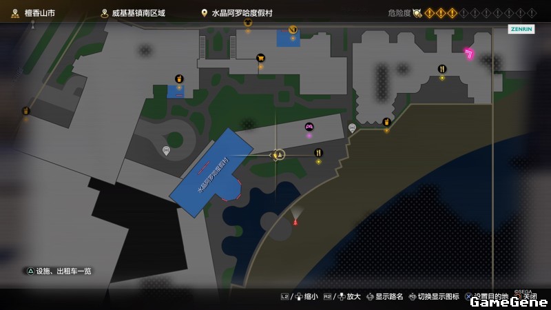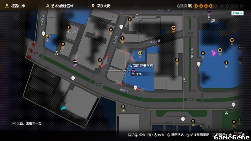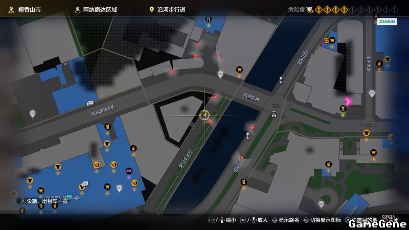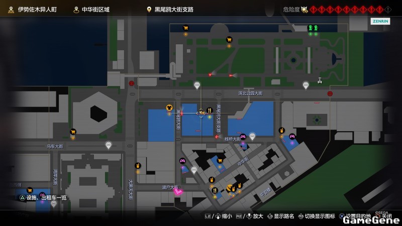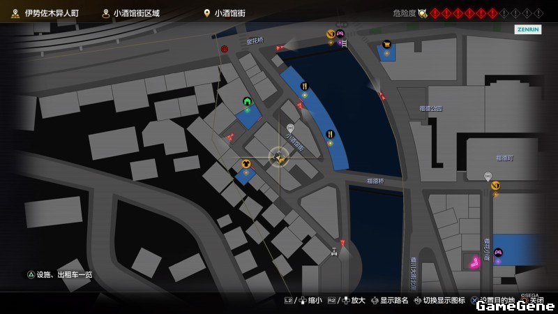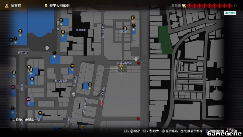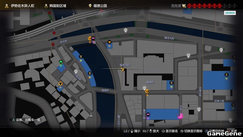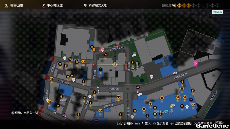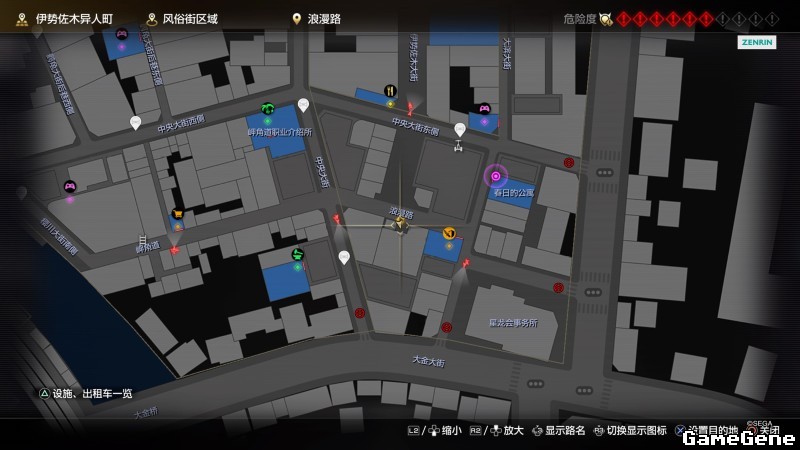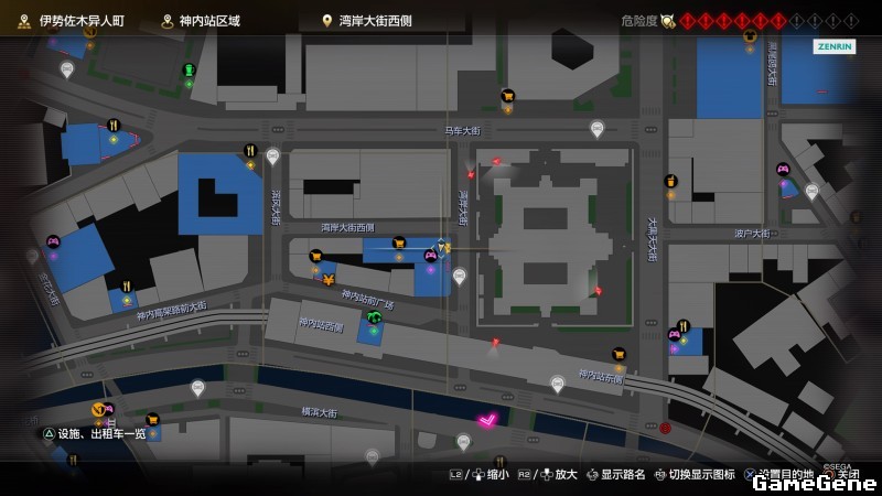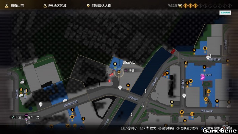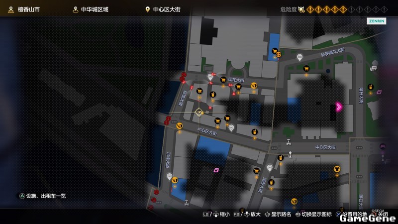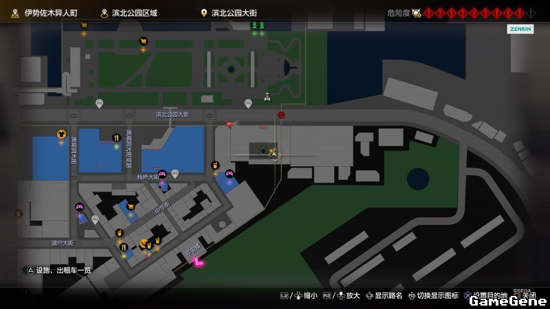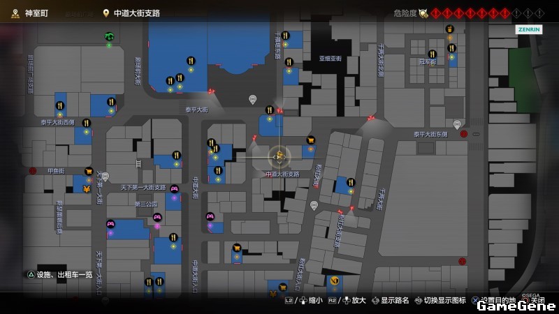 举例子,比如LOVE MAGIC 成人用品店。位置:横滨10,浪漫路东南方。那就在上图10标注位置,此位置再找到街道浪漫路,然后就能找到商店。