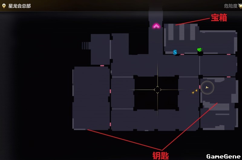 第一章,主线,横滨10,星龙会总部,如图位置休息处,银宝箱内获得道具,钥匙就在休息处的大地图西南方那个屋子的南部桌子上,以及东南方房间内架子上。