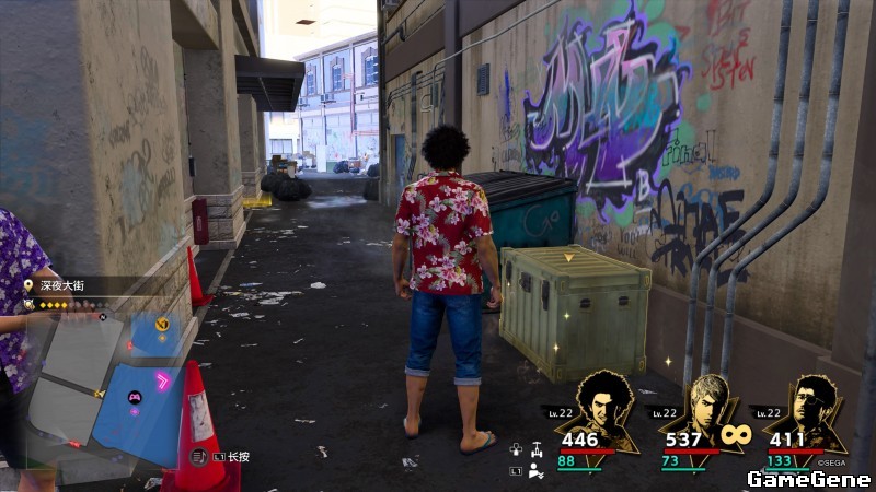 第三章,夏威夷1,山茶花大街,ABC商店 Little Japan店背后小巷,如图位置,银宝箱内获得道具。