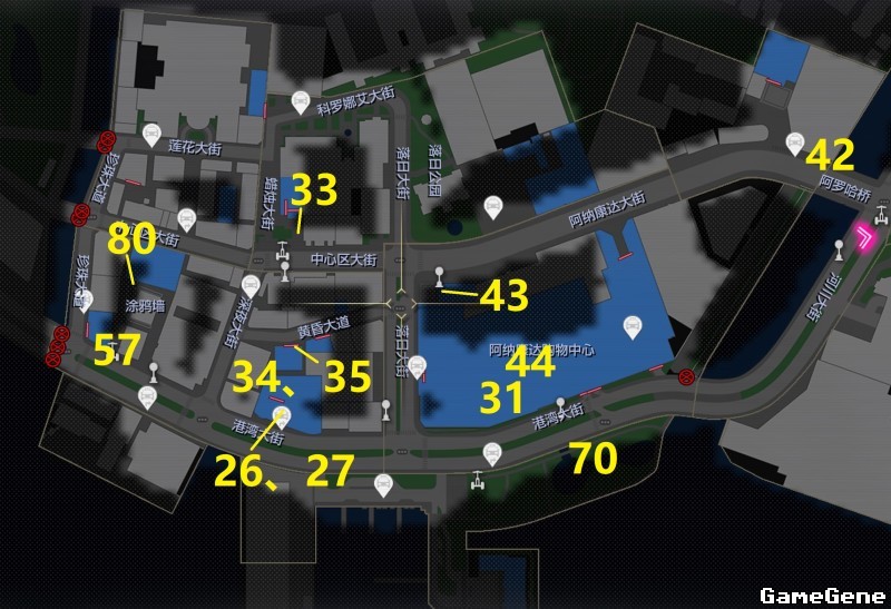 举例子,比如LOVE MAGIC 成人用品店。位置:横滨10,浪漫路东南方。那就在上图10标注位置,此位置再找到街道浪漫路,然后就能找到商店。
