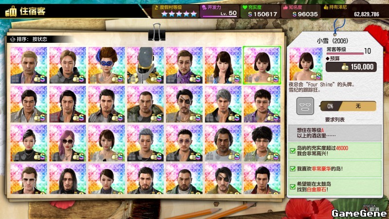 | 35 | 性感姐妹的妹妹 由香 | 夏威夷11 | 黄昏大道,极限陶醉店门口 | 综合能力温柔达到8后对话招募 | A级顾客 |