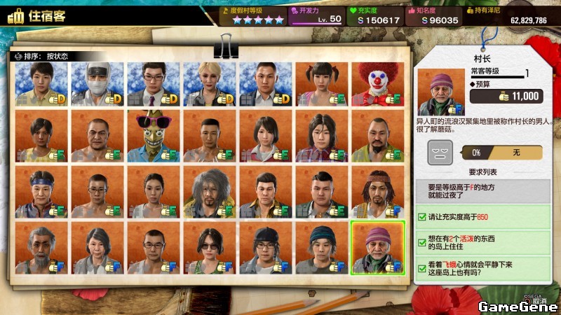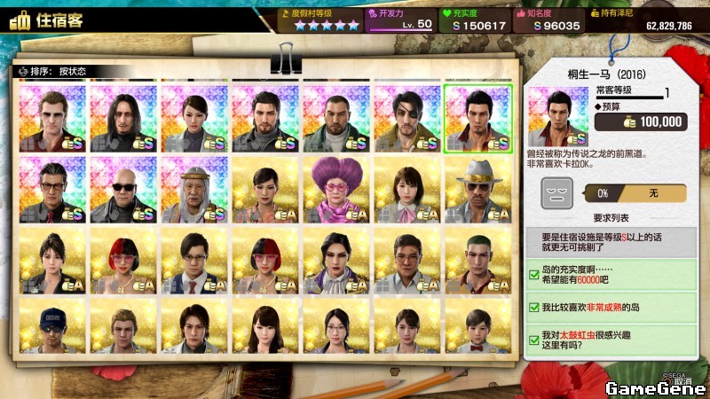 一共人,除去DLC一共有人,93以后的都是桐生的回忆日记完成后才会上岛。