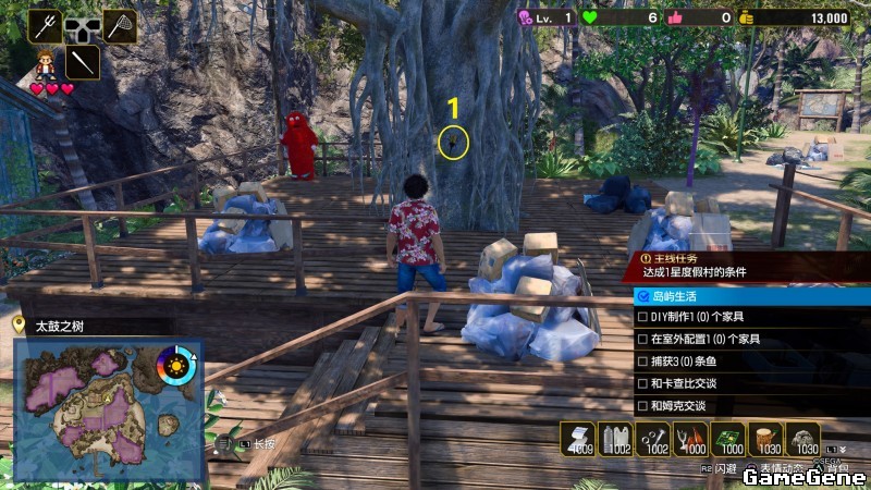 太鼓岛的游玩,前期主要工作就是做每日任务和收集资源,尽可能快的把地图区域开出来,这样才能在后面大量开采资源造东西。