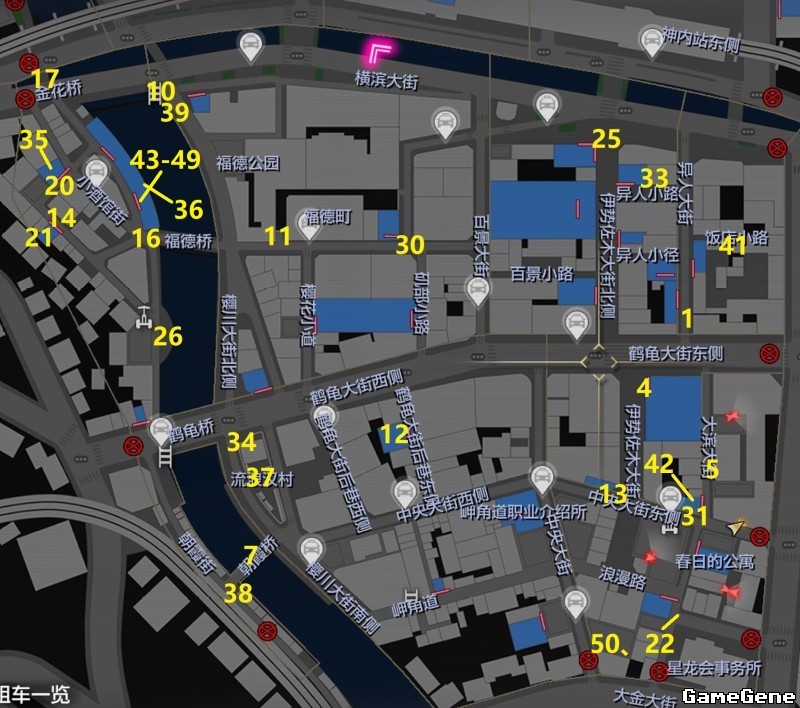 | No.22 | 东城会 | 第十章夜间 | 如龙0-如龙7 | 横滨10 | LOVE MAGIC东侧路口处 | |