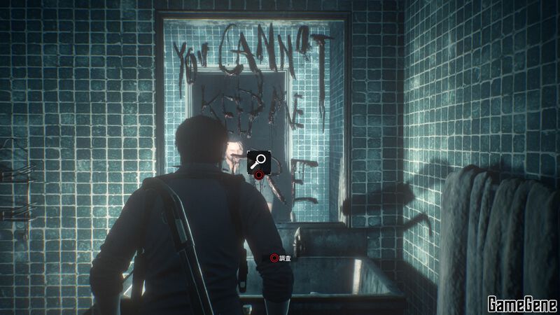 之后先在房间四处走走,看到自己的幻影,然后客厅会有记忆影像,之后厕所门打开,进入厕所调查镜子上的血字。