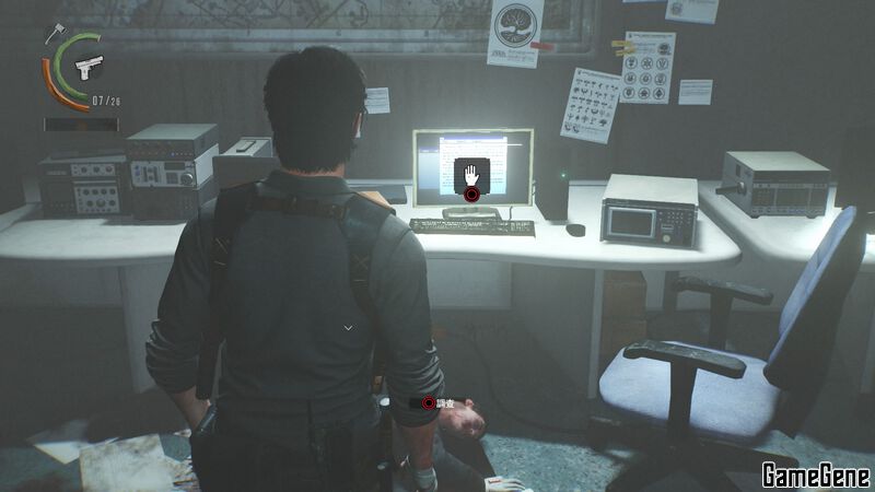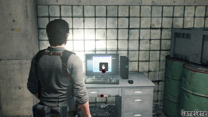 之后就可以从刚才打不开的门那里离开瓦斯泄露的区域了,上楼梯后,调查附近的电脑,得到档案「电子邮件:扩张与资料目标」