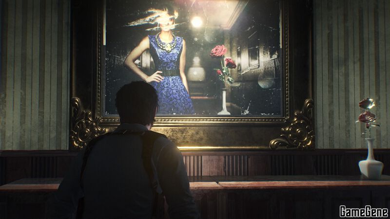 来到有个照相机和模特的房间,附近转一圈,找到玫瑰和项链放到模特身上,并且把模特转向摄像机的角度,用摄像机定焦拍照,后面的路就可以走了